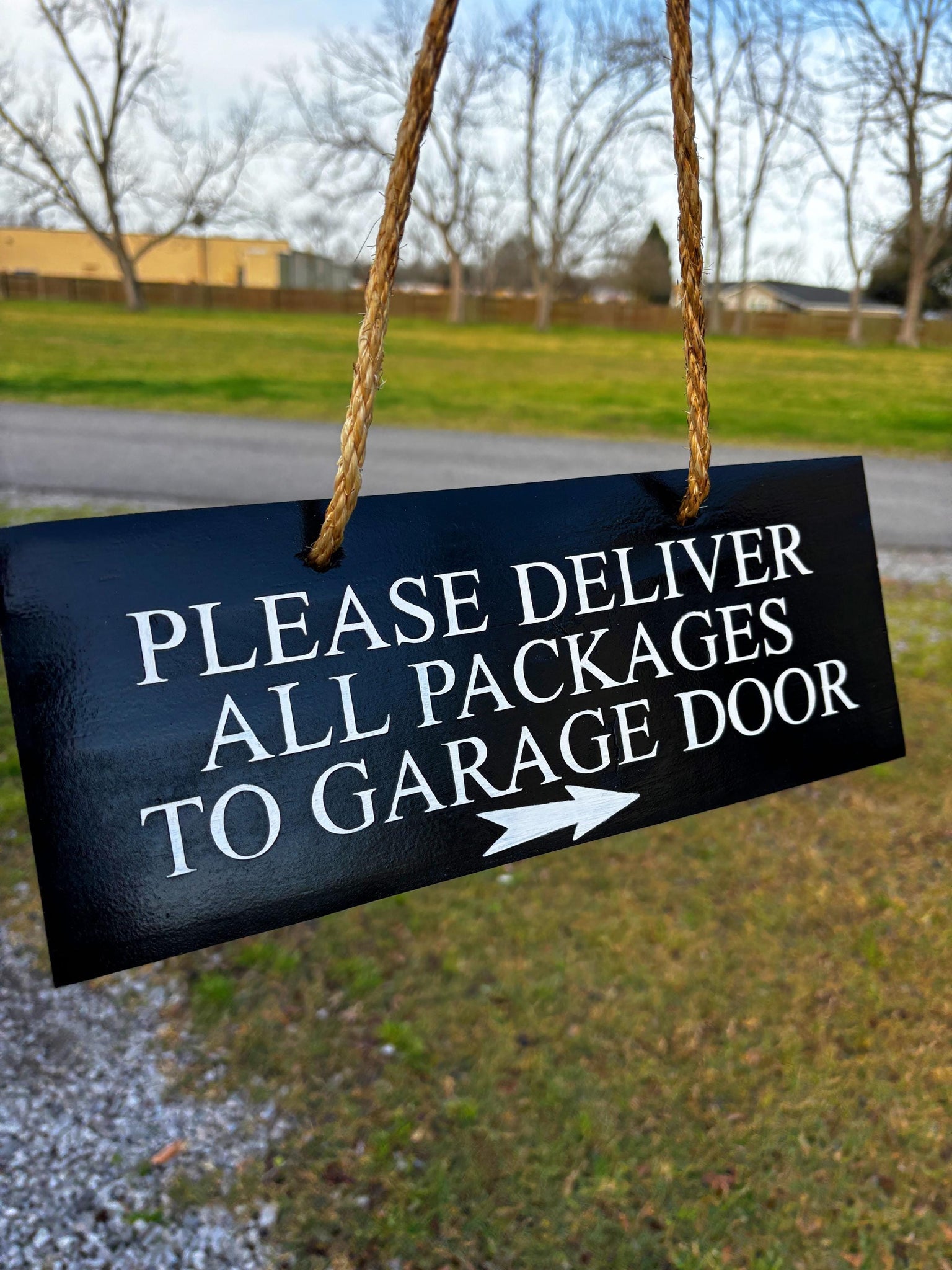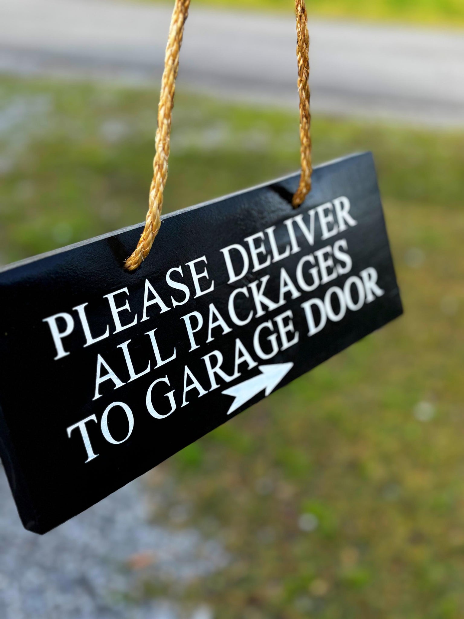 Ensure your packages are delivered to the right spot with this custom "Please Deliver Packages to Garage Door" sign. Handcrafted from durable cedar wood, this sign provides clear instructions to delivery personnel, helping to keep your packages safe and out of sight.
